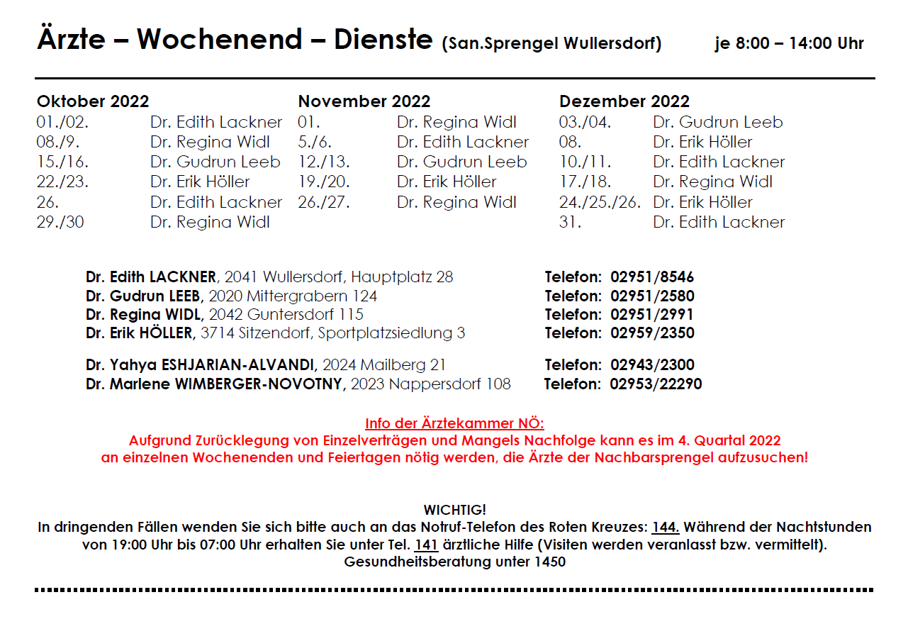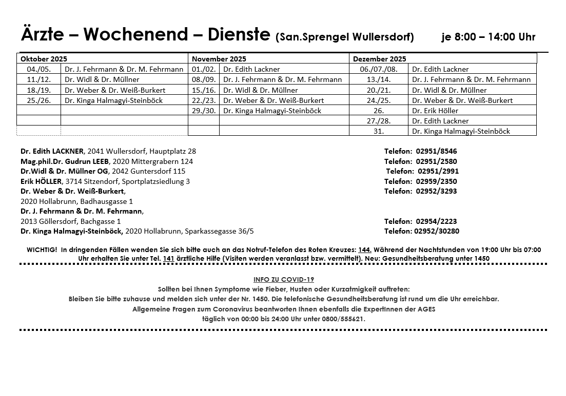 Ein Verzeichnis der Fachärzte finden Sie auf den Seiten der Stadt Hollabrunn!