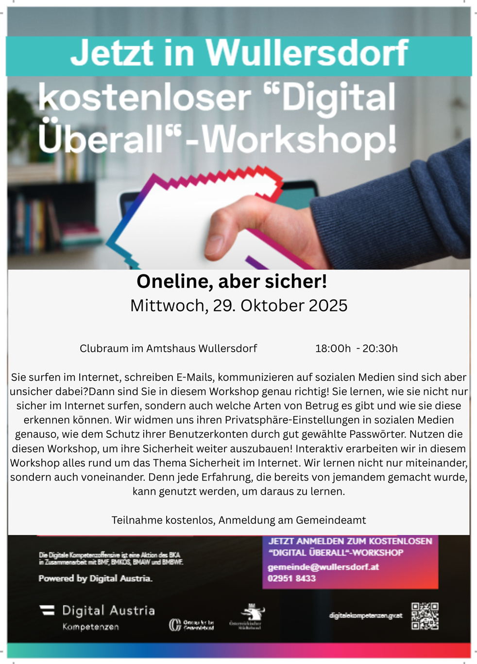 Teilnahme kostenlos, Anmeldung am Gemeindeamt unter gemeinde@wullersdorf.at oder 02951 - 8433