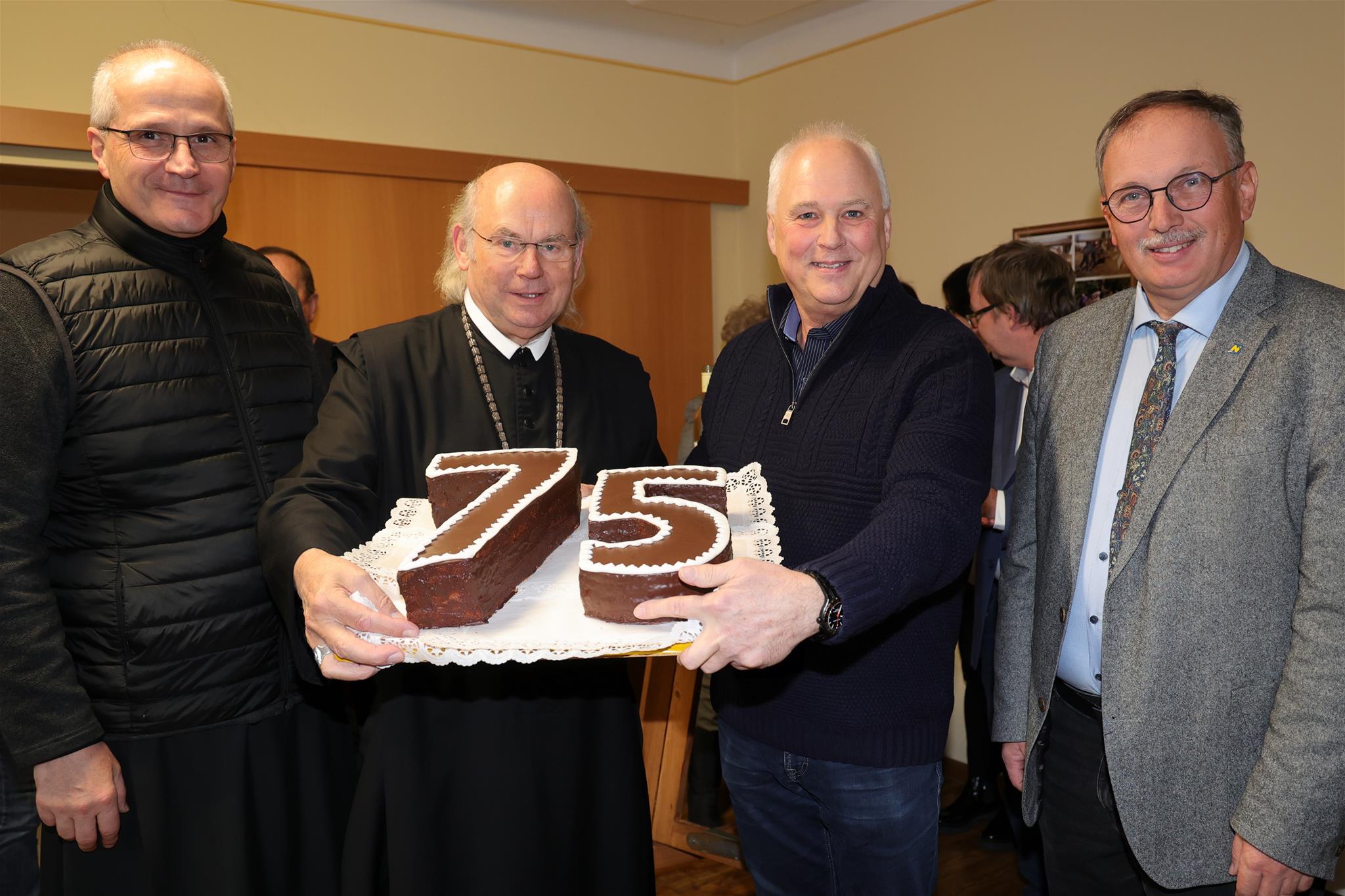 In diesem Rahmen gratulierten Pfarrer P. Michael FRITZ OSB. und der stellvertretende Vorsitzende des Pfarrgemeinderates von Immendorf Christian ANDRE den Abt am Ende der Festmesse noch nachträglich zum halbrunden Wiegenfest.
